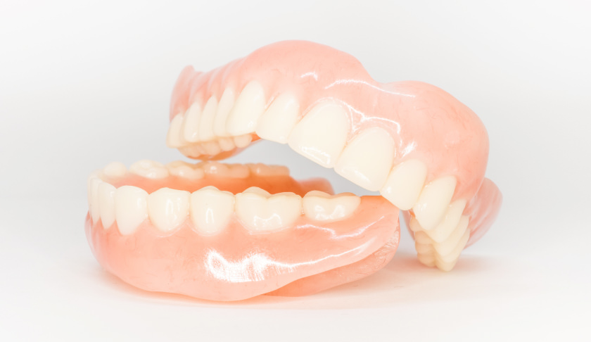 総入れ歯とは、上または下の歯のどちらかが欠けた状態を補うための義歯です。床(しょう)という人工歯が並んだピンク色の土台を口腔内の歯茎にのせ、粘膜の吸着力で固定します。