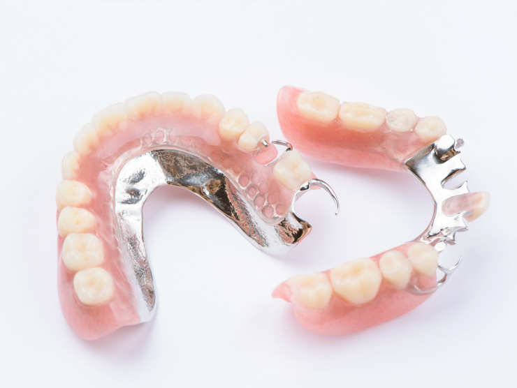 部分入れ歯とは、1~数本の歯を失った場合に入れる義歯。クラスプと呼ばれる金属のバネを、残っている歯に引っ掛けて義歯を固定する方法が一般的です。