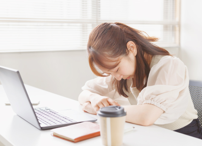 無呼吸や低呼吸が起きるたびに、脳は覚醒し睡眠が障害されます。自覚がない場合が多いですが、良質な睡眠が取れず、睡眠は常にこま切れの状態。十分な睡眠時間を取っていても日中に寝てはいけない場面で強い眠気を感じることが多いのです。