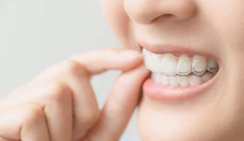入れ歯よりも小さいマウスピースは透明な素材で作られることが多いため、装着時に目立ちにくく、周囲からの見た目が気になる方にとって適した治療です。